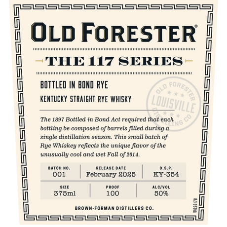 Old Forester The 117 Series Bottled in Bond Straight Rye