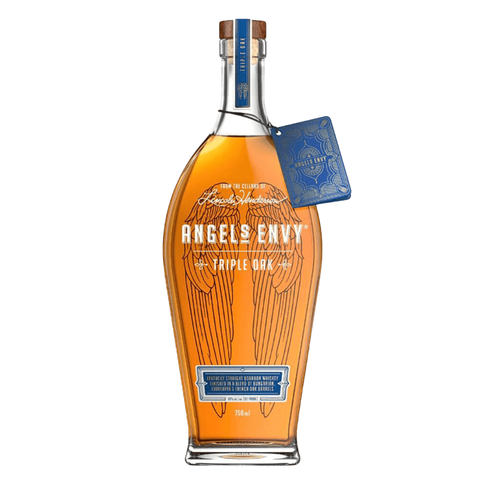 Discover the exquisite craftsmanship of Angel's Envy Triple Oak Finish Kentucky Straight Bourbon Whiskey, a testament to bourbon perfection. This unique expression begins with a blend of hand-selected, 4 to 9-year-old bourbons, which are then aged in American oak barrels for richness and depth. What sets it apart is its final maturation in three distinct oak barrels: traditional bourbon barrels, then newly charred American oak barrels, and finally, deeply toasted barrels. This triple barrel aging process imparts complex flavors of vanilla, ripe fruit, and toasted oak, culminating in a smooth, velvety finish that lingers with hints of sweet caramel. Whether enjoyed neat or in a crafted cocktail, Angel's Envy Triple Oak delivers an unparalleled bourbon experience that connoisseurs and newcomers alike will savor.