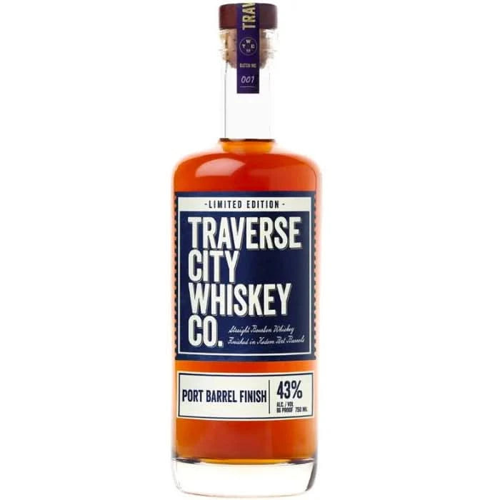 Traverse City Whiskey Co. Straight Bourbon Whisky Port Barrel Finish- In this limited edition, We've introduced a new layer of complexity to our straight bourbon whiskey. Finished in rare port wine casks from the Kedem kosher winery, for three months this whiskey has a truly distinct character with rich vanilla and cinnamon notes. Mashbill, 71% Corn, 25% Rye, 4% Barley